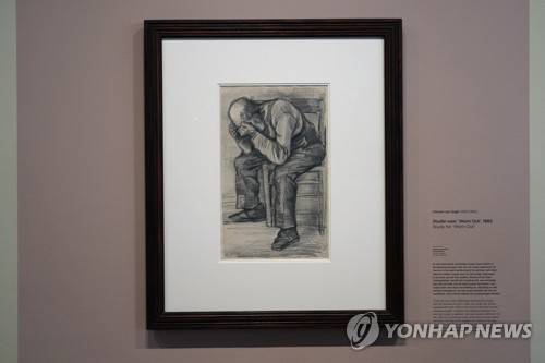 The Study for "Worn Out", a drawing by Dutch master Vincent van Gogh, dated Nov. 1882, goes on public display for the first time at the Van Gogh Museum in Amsterdam, Netherlands, Thursday, Sept. 16, 2021. (AP Photo/Peter Dejong)