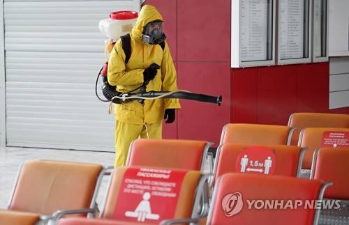 epa09471459 A Russian Emergency Situations Ministry worker sanitises Belorussky railway station as part of the campaign to prevent the spread of the SARS-CoV-2 coronavirus which causes the COVID-19 disease in Moscow, Russia, 16 September 2021. Over the past 24 hours, 2479 cases of COVID-19 coronavirus infection have been detected in Moscow. EPA/MAXIM SHIPENKOV