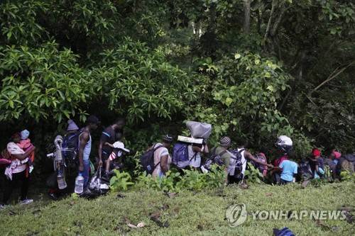 Migrants continue their trek north, near Acandi, Colombia, Wednesday, Sept. 15, 2021. The migrants, mostly Haitians, are on their way to crossing the Darien Gap from Colombia into Panama dreaming of reaching the U.S. (AP Photo/Fernando Vergara)