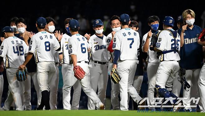 2021 KBO리그 LG 트윈스와 NC 다이노스의 경기가 16일 창원NC파크에서 열렸다. NC가 2대0으로 승리했다. 경기 종료 후 기쁨을 나누는 NC 선수들의 모습. 창원=허상욱 기자 wook@sportschosun.com/2021.09.16/