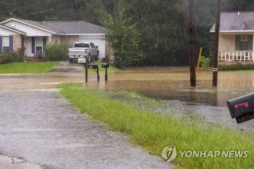 Water from flooding covers the yards and streets in the Sam Rayburn Drive neighborhood in Hattiesburg, Miss, Wednesday, Sept. 15, 2021, as rain from Tropical Depression Nicholas soaked parts of the state throughout the afternoon. (Dominic Gwinn/The Hattiesburg American via AP). MANDATORY CREDIT; NO LICENSING EXCEPT BY AP COOPERATIVE MEMBERS