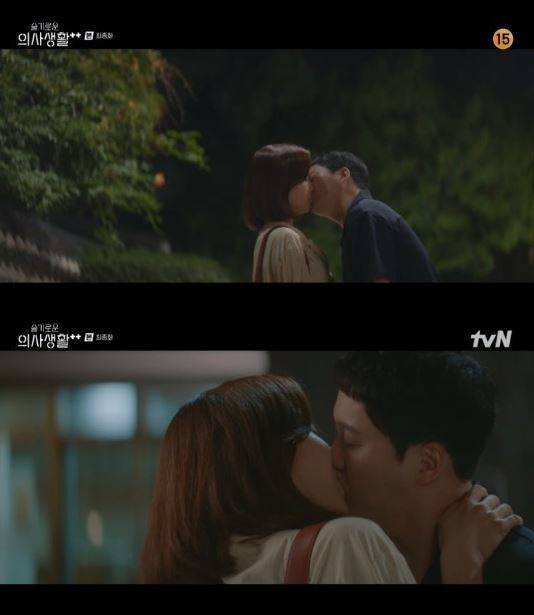 16일 오후 방송된 tvN 목요드라마 '슬기로운 의사생활 시즌2'에서는 양석형(김대명 분)이 추민하(안은진 분)의 고백을 듣고 깜짝 키스를 하는 장면이 그려졌다.