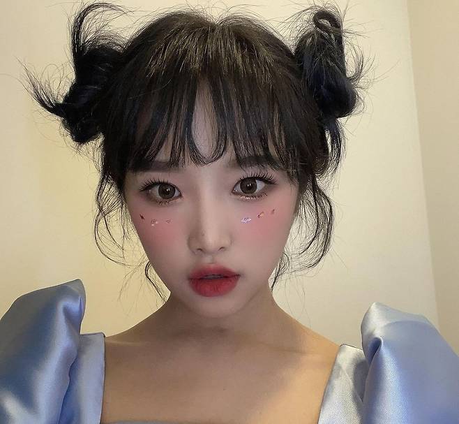 사진 속 최예나는 귀여운 뿌까 머리를 하고 요정美를 발산했다. 핑크색으로 물든 볼에는 무지개, 번개, 하트행성 등의 아기자기한 스티커를 붙여 사랑스러움을 더했다.