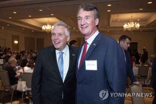 FILE - Virginia gubernatorial candidates, Democrat Terry McAuliffe left, and Republican Glenn Youngkin, pose for a photo, during the Virginia FREE leadership luncheon, in McLean, Va. McAuliffe and Youngkin are set to square off in Virginia’s first gubernatorial debate of the general election season, Thursday, Sept. 16. The race is being closely watched as a possible indicator of voter sentiment heading into the 2022 national midterm elections. (AP Photo/Cliff Owen, File) SEPT. 1, 2021 FILE PHOTO