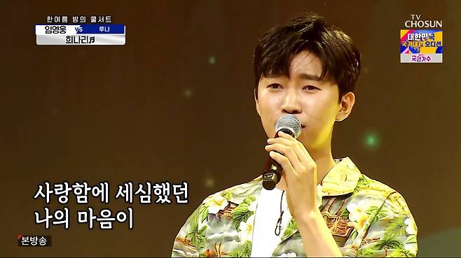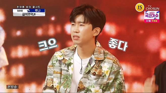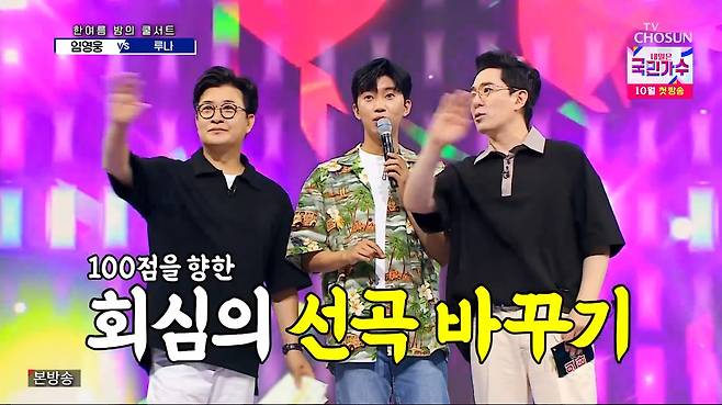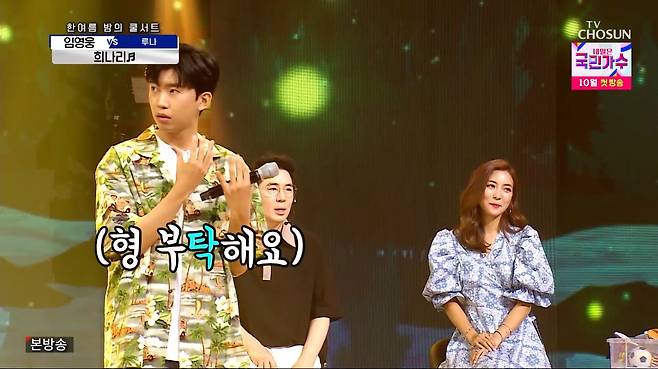 루나의 활약에 임영웅은 "곡을 좀 바꿀까요?"라며 즉석에서 구창모의 '희나리'로 선곡을 바꿨다. 무대 시작 전 "떨린다"고 속내를 밝힌 그는 반주가 시작되자 영탁에게 '탁모니카'를 요청하며 곧 여유를 찾았다.