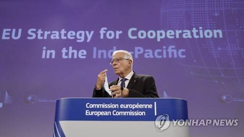 epa09471517 The high representative for the Foreign Affairs of the European Union Josep Borrell gives a press conference on EU Strategy for Cooperation in the Indo-Pacific in Brussels, Belgium, 16 September 2021. Borrel presented actions to advance the implementation of the EU Strategy for cooperation in the Indo-Pacific, approved by the Council on 19 April 2021. EPA/OLIVIER HOSLET