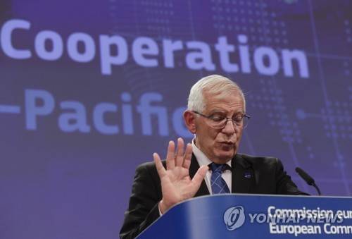 epa09471519 The high representative for the Foreign Affairs of the European Union Josep Borrell gives a press conference on EU Strategy for Cooperation in the Indo-Pacific in Brussels, Belgium, 16 September 2021. Borrel presented actions to advance the implementation of the EU Strategy for cooperation in the Indo-Pacific, approved by the Council on 19 April 2021. EPA/OLIVIER HOSLET
