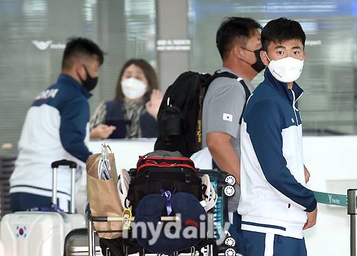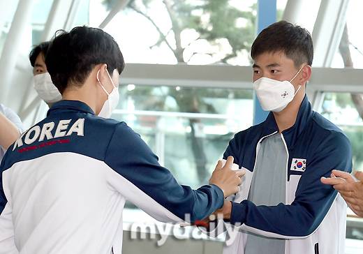 최고의 여름을 보낸 차가운 안산과 뜨거운 김제덕은 공항에서 취재진들과 팬들의 플레쉬 세례가 부담스러운지 어색한 표정을 지으며 긴장하기도 했다.
