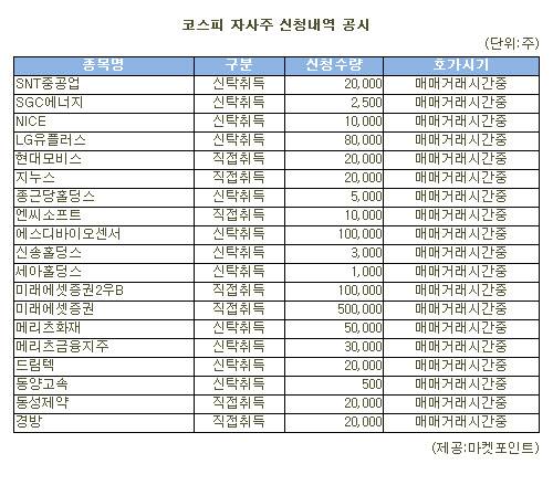 [표]미래에셋증권 등 코스피 자사주 신청내역(17일)