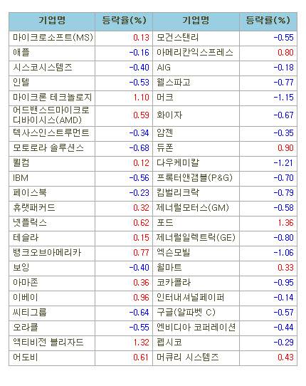 [표]미국 주요기업 주가(9/16)