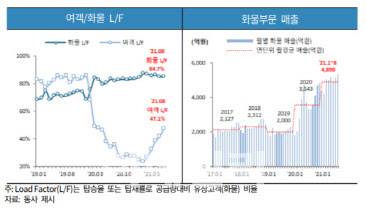 △대한항공(003490)=한국기업평가(이하 한기평)는 대한항공의 무보증사채 등급(BBB+) 전망을 ‘부정적’에서 ‘안정적’으로 변경. 화물사업을 통한 이익창출 기조가 예상보다 견조하게 유지. 여객매출이 급감하면서 외형은 크게 축소됐으나, 화물사업이 실적 하방을 지지하면서 양호한 이익창출력을 유지. 방역물품 등의 일시적 수요와 이에 기반한 화물부문의 초과이익이 점차 축소될 것으로 봤던 당초 예상과 달리 2021년 들어서도 구조적인 수급불균형과 글로벌 경기부양 효과로 높은 운임과 물동량이 유지. 여객기 운항 정상화 전까지는 근본적인 공급 부족을 해소하기 어렵고, 최근 수요기반도 다양화되고 있어 당분간 화물사업 호조세는 지속될 것으로. 이러한 화물부문의 견조한 이익창출 기조는 코로나19로 인한 사업기반의 불확실성을 상당수준 완화하는 요인으로 작용. 자구계획 이행 등을 통해 업황 침체를 감내할 재무완충력을 확보. 화물사업의 영업현금흐름 창출과 자산매각 등의 자구계획을 통해 적정 수준의 현금유동성을 유지하고 있고, 회복된 자본시장 접근성과 정책적 지원의 활용 가능성 등을 감안하면 업황 침체를 감내할 수 있는 재무완충력을 확보한 것으로 판단. 지난해 유상증자와 사업부 매각 등으로 2조원 이상의 현금을 확보한데 이어 2021년 3월에도 아시아나항공 인수금액(1조8000억원)을 크게 초과하는 3조3000억원의 유상증자로 추가 유동성을 확보. 서울시와의 이견으로 진행이 더디던 송현동 부지와 왕산레저의 매각도 연내에 마무리될 것으로. 전반적인 차입금 규모가 축소됐고, 잠재채무 리스크가 완화되고 있다는 점도 재무안정성 개선에 기여.