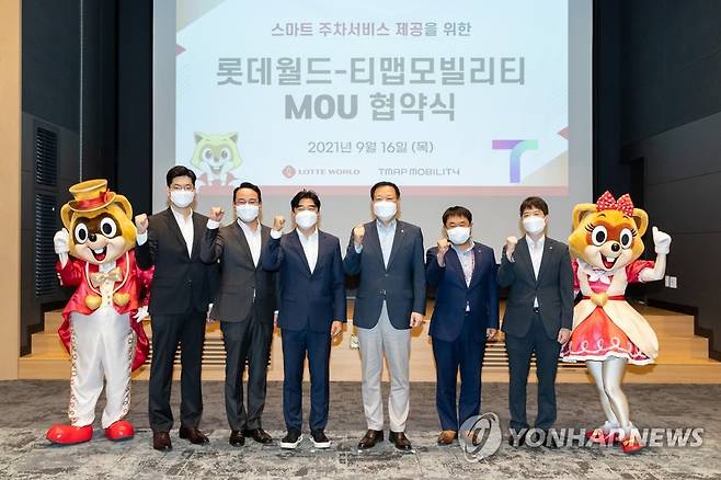 (서울=연합뉴스) 롯데월드와 티맵모빌리티가 지난 16일 주차장 기반 모빌리티 사업을 위한 업무협약을 체결했다고 17일 밝혔다.