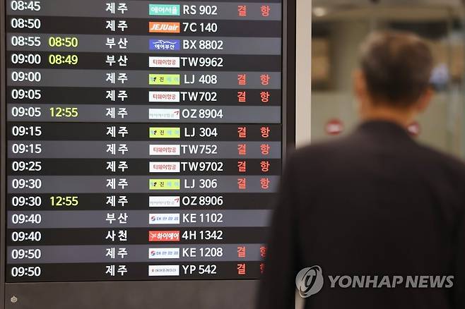 태풍으로 줄줄이 결항되는 제주 출발 비행편