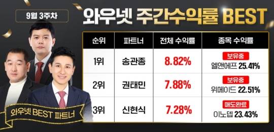 와우넷 파트너 송관종, 9월 3주 주간 수익률 1위