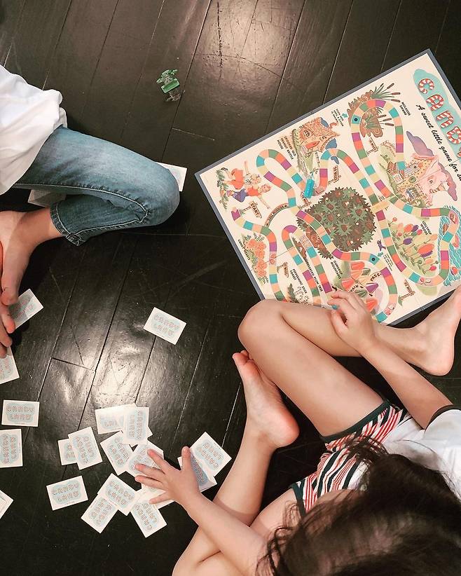 공개된 사진 속에는 손태영의 딸 리호 양의 모습이 담겨있다. 리호는 친구와 함께 집 마당에 설치된 트램펄린을 즐기는 모습이다. 이어진 사진에서는 카드 놀이를 하는 아이들의 모습이 눈길을 끈다.