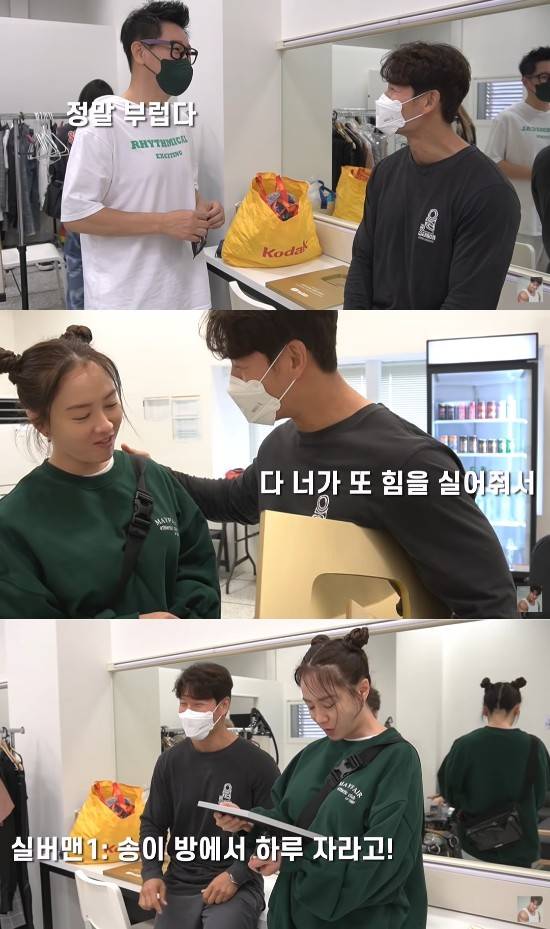 대기실에서는 송지효가 모습을 비추자 김종국은 "다 너가 힘을 실어줘서"라며 고마워했고, 송지효는 "이거 나도 지분 있는 거 아냐?"라며 웃었다. 그런 송지효를 본 지석진과 하하는 왜 자신의 채널에는 나오지 않는 거냐며 따졌고, 송지효는 별다른 반응을 보이지 않았다. 김종국은 "지효야 이거(실버 버튼) 너 가져라"라고 대인배적 면모를 보이는 가 했는데, 송지효가 "기념으로 가져갈게요"라고 말하자 "농담 아니고?"라며 당황하는 모습을 보였다.