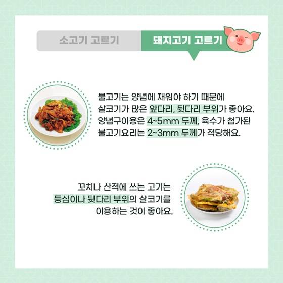 불고기는 양념에 재워야 하기 때문에 살코기가 많은 앞다리, 뒷다리 부위가 좋아요.