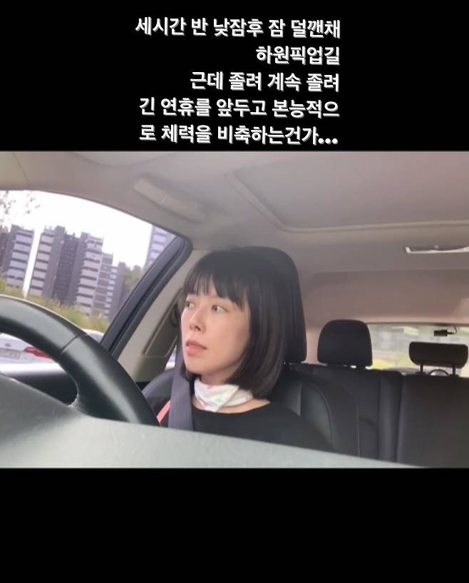 신지수는 16일 자신의 인스타그램에 "3시간 반 낮잠 후 잠 덜 깬 채 하원 픽업길. 근데 졸려 계속 졸려. 긴 연휴를 앞두고 본능적으로 체력을 비축하는 건가"라는 글과 함께 영상을 게재했다.
