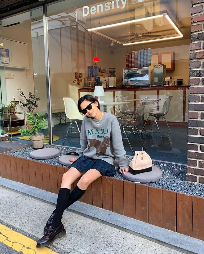 공개된 사진 속 김나영은 그레이 컬러의 니트와 테니스 스커트를 매치해 사랑스러운 룩을 완성했다.