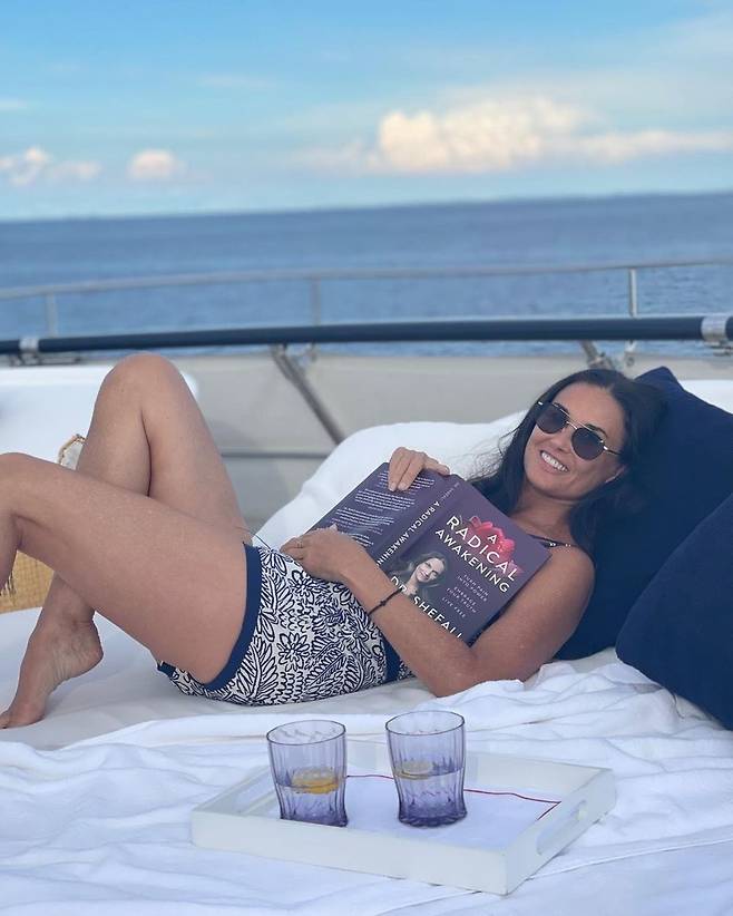 공개된 사진 속 데미 무어는 요트 위에서 휴가를 즐기고 있는 모습.