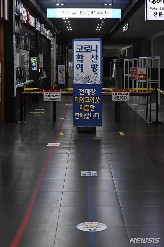[용인=뉴시스] 김종택기자 = 추석 연휴 기간 고속도로 휴게소 실내 매장 내 취식금지가 시작된 17일 경기도 용인시 경부고속도로 하행선 기흥휴게소 내 식당 운영이 중단되고 있다. 정부는 오늘부터 22일까지 추석 특별교통대책기간으로 정하고 고속도로 휴게소 내 출입구 동선 분리 및 실내취식을 금지한다. 2021.09.17.