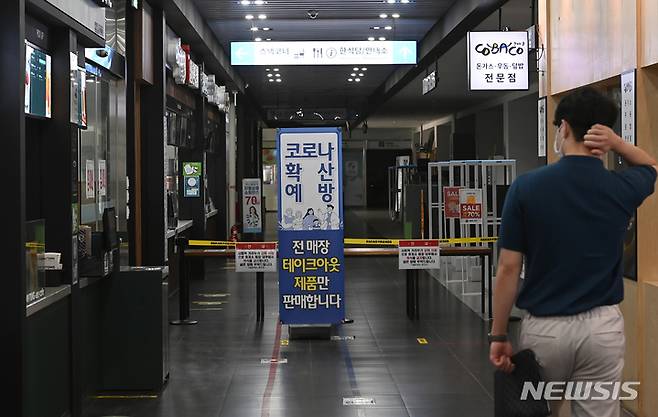[용인=뉴시스] 김종택기자 = 추석 연휴 기간 고속도로 휴게소 실내 매장 내 취식금지가 시작된 17일 경기도 용인시 경부고속도로 하행선 기흥휴게소 내 식당 운영이 중단되고 있다. 정부는 오늘부터 22일까지 추석 특별교통대책기간으로 정하고 고속도로 휴게소 내 출입구 동선 분리 및 실내취식을 금지한다. 2021.09.17.