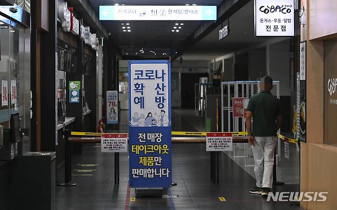 [용인=뉴시스] 김종택기자 = 추석 연휴 기간 고속도로 휴게소 실내 매장 내 취식금지가 시작된 17일 경기도 용인시 경부고속도로 하행선 기흥휴게소 내 식당 운영이 중단되고 있다. 정부는 오늘부터 22일까지 추석 특별교통대책기간으로 정하고 고속도로 휴게소 내 출입구 동선 분리 및 실내취식을 금지한다. 2021.09.17.