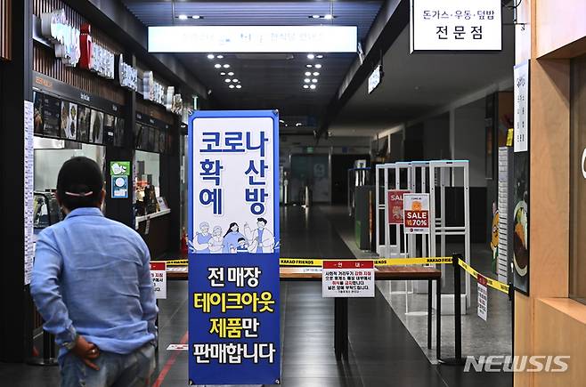 [용인=뉴시스] 김종택기자 = 추석 연휴 기간 고속도로 휴게소 실내 매장 내 취식금지가 시작된 17일 경기도 용인시 경부고속도로 하행선 기흥휴게소 내 식당 운영이 중단되고 있다. 정부는 오늘부터 22일까지 추석 특별교통대책기간으로 정하고 고속도로 휴게소 내 출입구 동선 분리 및 실내취식을 금지한다. 2021.09.17.