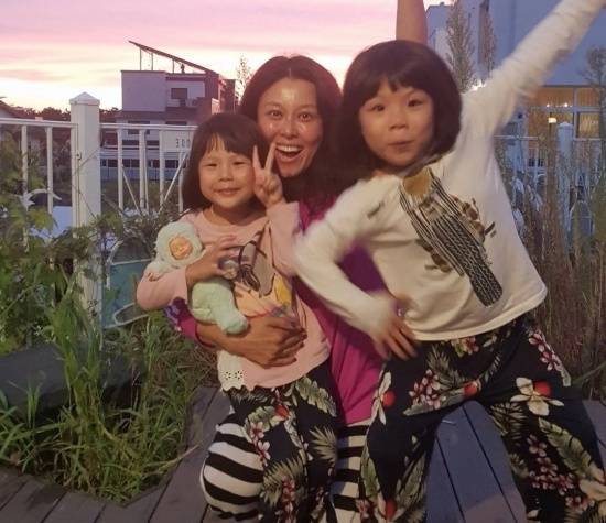 공개된 사진 속에는 아름다운 노을을 배경으로 환하게 웃고 있는 홍지민 가족의 모습이 담겼다. 두 딸과 함께한 홍지민의 '엄마 미소'가 눈길을 끈다.