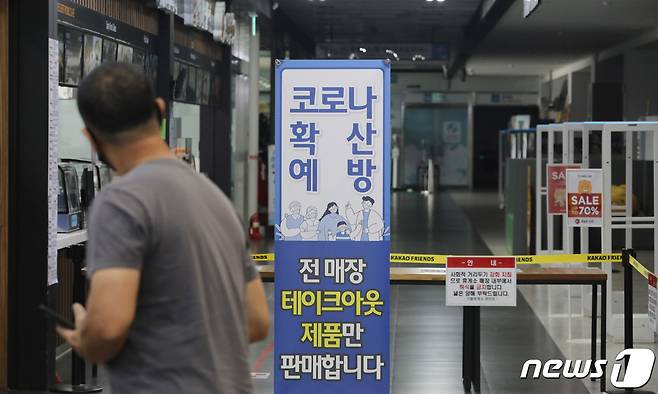 (용인=뉴스1) 김영운 기자 = 추석 연휴 기간 신종 코로나바이러스 감염증(코로나19) 확산 방지를 위해 고속도로 휴게소의 매장 내 취식 금지를 시작한 17일 오전 경기도 용인시 기흥구 경부고속도로 기흥휴게소(부산방향) 내 식당가가 문을 닫아 한산한 모습을 보이고 있다. 국토교통부는 17∼22일 6일간을 '추석 특별교통대책기간'으로 정해 한국도로공사가 관리하는 모든 고속도로 휴게소 실내 매장에서는 좌석 운영이 금지되고 포장만 가능한 방역 강화 지침이 시행된다고 밝혔다. 2021.9.17/뉴스1