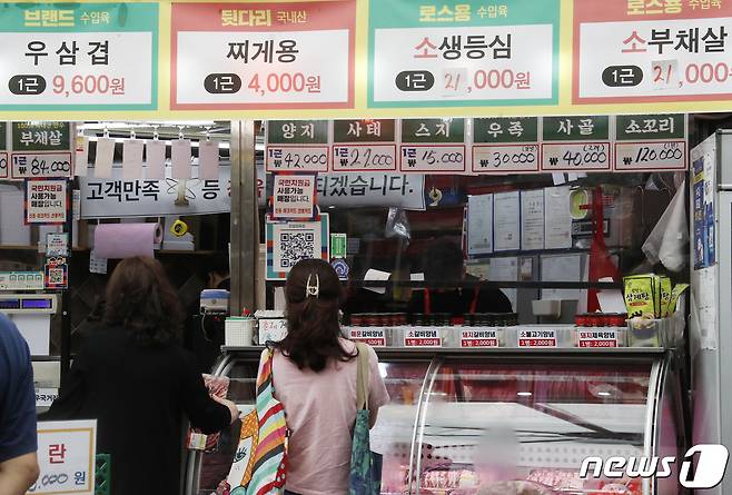 (서울=뉴스1) 권현진 기자 = 추석 연휴를 앞둔 17일 서울 성북구 돈암시장을 찾은 시민들이 명절준비를 하기 위해 장을 보고 있다. 2021.9.17/뉴스1