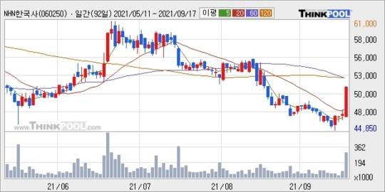 NHN한국사이버결제, 주가 반등 현재는 +10.71%.. 외국인 기관 동시 순매수 중