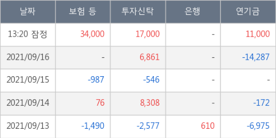 13시 20분 잠정집계에 따르면, NHN한국사이버결제는 외국인과 기관이 각각 14,520주, 62,000주를 순매수 중이다. 기관 중에 보험과 투자신탁, 은행의 자금이 유입되었다.