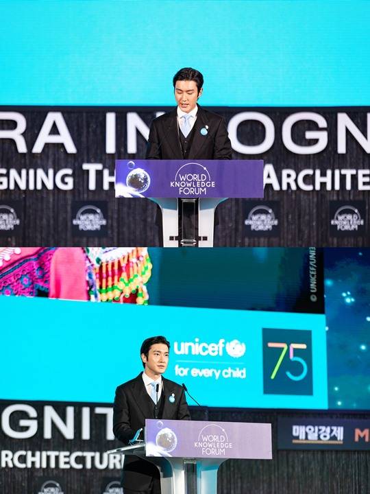 최시원은 16일 오후 서울 장충 아레나에서 열린 ‘2021 세계지식포럼’ 유니세프 세션에 유니세프 동아시아태평양 지역 친선대사로서 참여, ‘디지털 환경에서 어린이가 처한 위험’을 주제로 연설해 화제를 모았다.