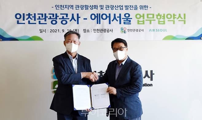 인천관광공사와 에어서울은 인천 관광 활성화 및 관광산업 발전을 위한 업무협약을 16일 체결했다.