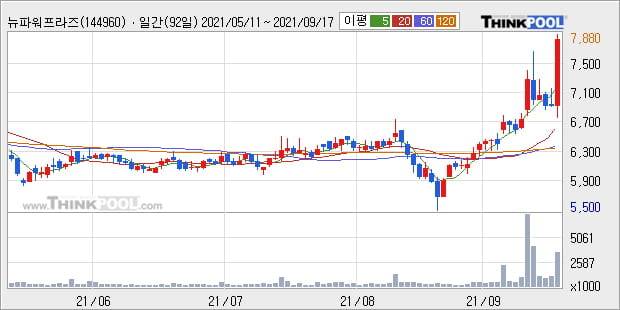 '뉴파워프라즈마' 52주 신고가 경신, 단기·중기 이평선 정배열로 상승세