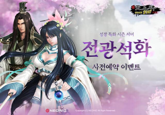 (지디넷코리아=이도원 기자)네오위즈(공동대표 문지수, 김승철)는 온라인 MMORPG ‘신 천상비’의 시즌 서버 ‘전광석화’ 사전예약을 진행한다고 17일 밝혔다.