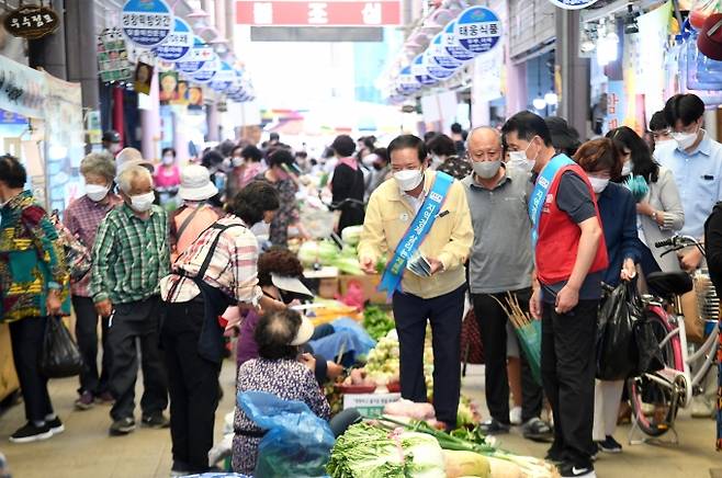 이번 방문은 고유의 명절인 추석을 앞두고 코로나19 장기화로 힘든 시기를 보내고 있는 상인들의 애로사항을 청취하고, 코로나19 방역상황을 점검을 통해 안전한 명절보내기의 일환으로 마련됐다.