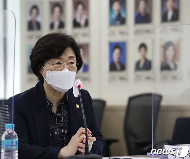 (서울=뉴스1) 송원영 기자 = 정영애 여성가족부 장관이 17일 서울 종로구 정부서울청사에서 열린 아이돌봄 간편결제서비스 '돌봄페이' 오픈 행사에서 인사말을 하고 있다. 이번 행사는 아이돌봄사업 주거래은행인 KB국민은행과 지난 4월 업무협약을 체결해 추진한 '돌봄페이'와 '돌봄톡톡' 서비스의 개통을 국민들과 서비스 이용자들에게 널리 알리기 위해 마련됐다.돌봄페이와 돌봄톡톡 서비스는 아이돌봄서비스 모바일 애플리케이션(앱)에서 사용하는 간편결제서비스와 채팅 서비스를 각각 말한다. 2021.9.17/뉴스1