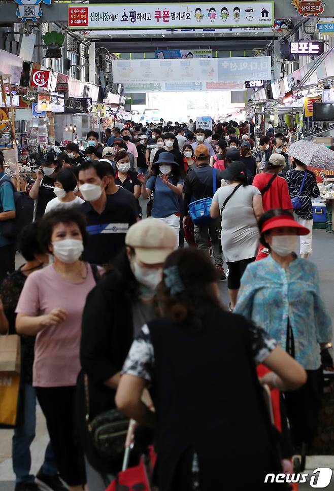 (서울=뉴스1) 김명섭 기자 = 본격적인 추석연휴를 앞두고 17일 서울 양천구 신영시장에서 시민들이 장을 보고 있다. 2021.9.17/뉴스1