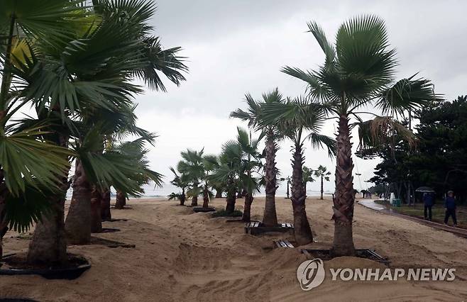 (강릉=연합뉴스) 이해용 기자 = 17일 오후 강원 강릉시 경포해변에 심어진 야자수가 이국적인 풍경을 연출하고 있다. 2021.9.17