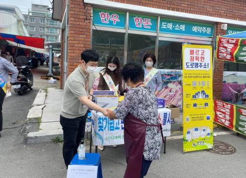 이날 민원지적과장과 직원들은 군민들에게 도로명주소 홍보 리플릿과 홍보 물품을 배부하고 도로명주소의 편리성과 활용 방법을 안내했다.