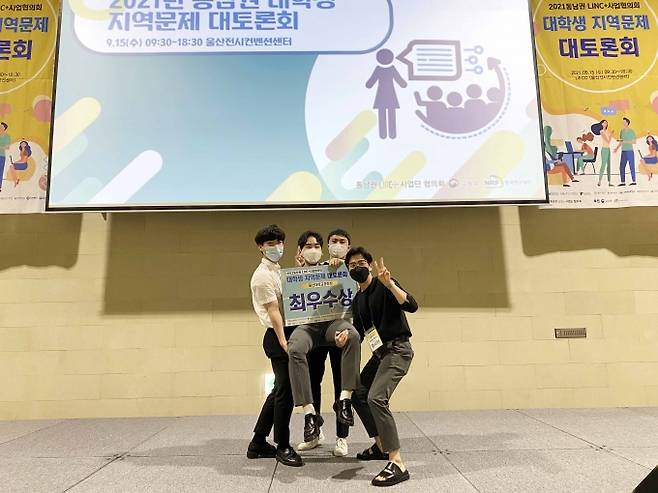 울산전시컨벤션센터에서 열린‘2021년 동남권 대학생 지역문제 대토론회’에서 인제대학교 제약공학과 어방동클라스(김동명, 여희구, 정시현, 정찬진)팀이 최우수상(울산대학교 총장상)을 수상했다.
