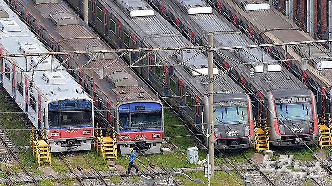 지하철 1~8호선을 운영하는 서울교통공사 노동조합의 총파업 예고일을 하루 앞둔 13일 서울 구로차량사업소에 전동차가 세워져 있다. 서울교통공사 노사는 파업 직전 막판 교섭을 통해 잠정 합의를 이루면서 파업으로 치닫는 상황은 피하게됐다. 노조는 13일 밤 11시 40분쯤 임단협 본교섭 타결 소식을 알렸다. 이날 오후 3시 교섭을 시작한지 8시간 30분만이었다. 박종민 기자