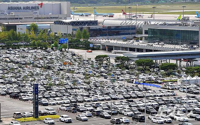 추석 연휴를 하루 앞둔 17일 김포공항 국내선 주차장이 귀성객 및 여행객들의 차량으로 가득차 있다. 박종민 기자