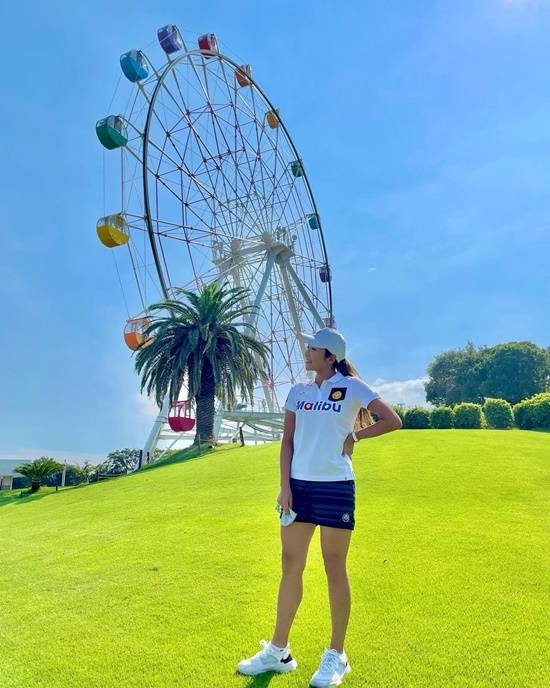 공개된 사진 속 이보미는 테마파크에서 휴식을 즐기는 모습. 탁 트인 자연을 배경으로 포즈를 취하는 이보미의 늘씬하고 건강미 넘치는 몸매와 해맑은 미소가 시선을 사로잡는다.