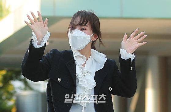 그룹 레드벨벳의 웬디가 17일 오후 서울 목동SBS 방송국에서 열리는 '웬디의 영스트리트'에 참석하며 포즈를 취하고 있다