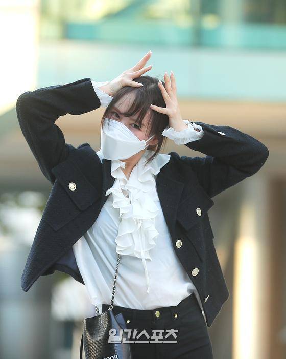그룹 레드벨벳의 웬디가 17일 오후 서울 목동SBS 방송국에서 열리는 '웬디의 영스트리트'에 참석하며 포즈를 취하고 있다