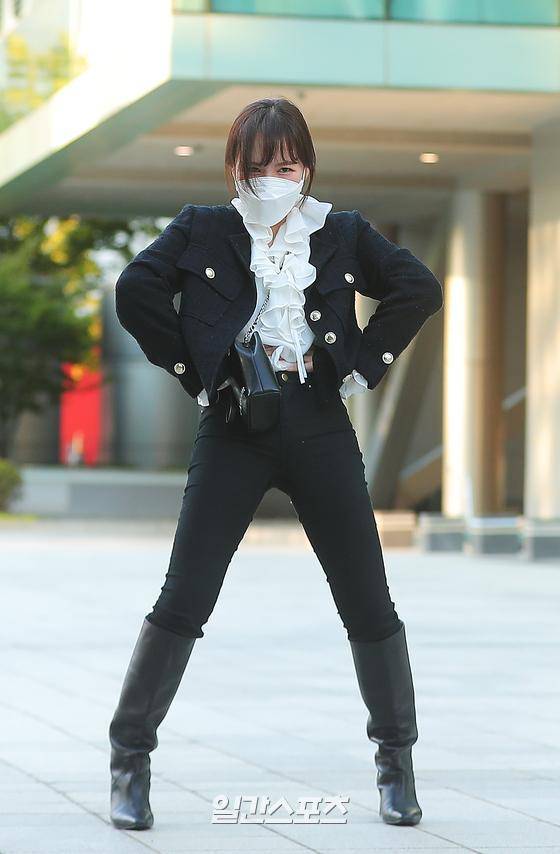 그룹 레드벨벳의 웬디가 17일 오후 서울 목동SBS 방송국에서 열리는 '웬디의 영스트리트'에 참석하며 포즈를 취하고 있다