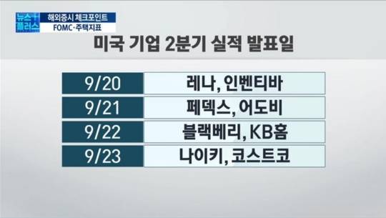 이밖에 20일 레나, 21일 페덱스와 어도비, 22일 블랙베리 등 미국 주요 기업들의 2분기 실적도 발표될 예정입니다.